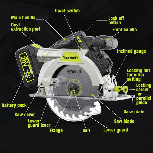 Yowmoft 20V 6-1/2‘’ Cordless Circular Saw CSC-165 Kit (with Battery and Charger)